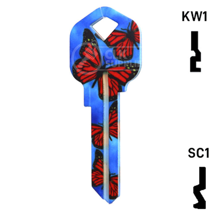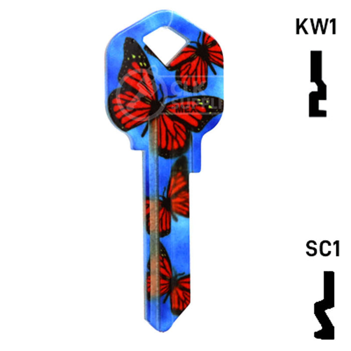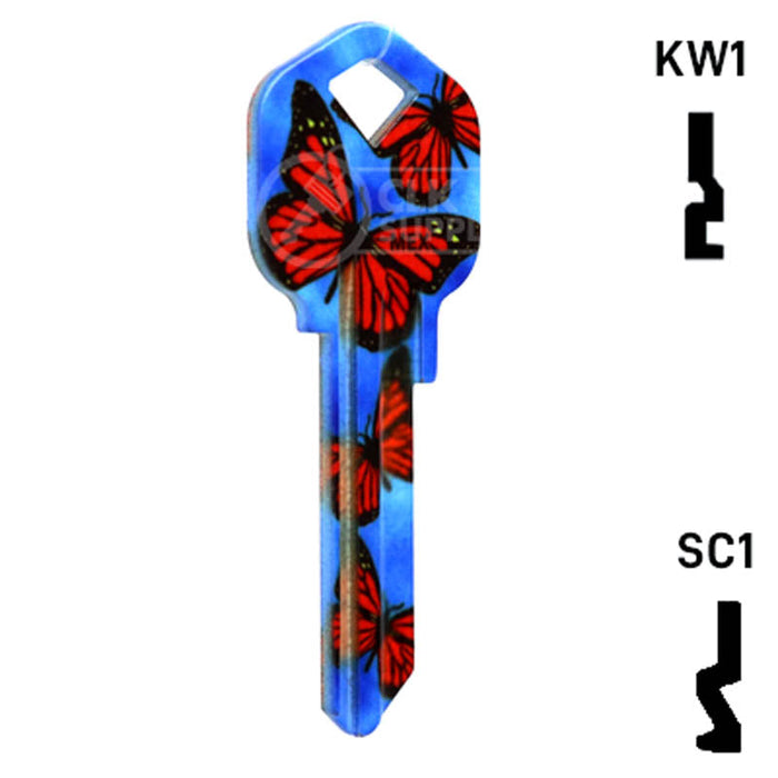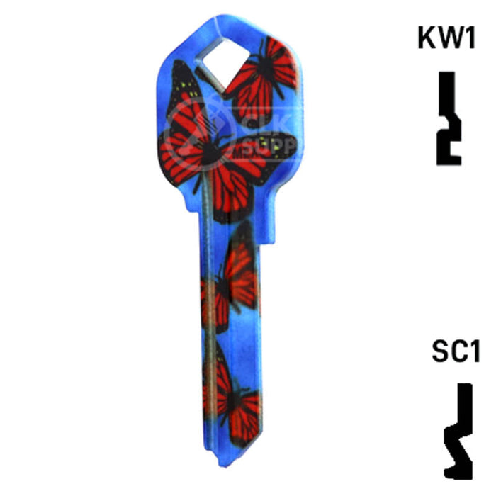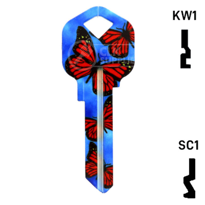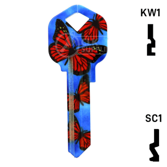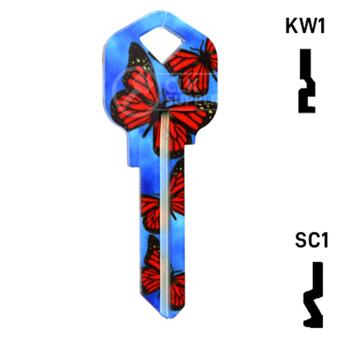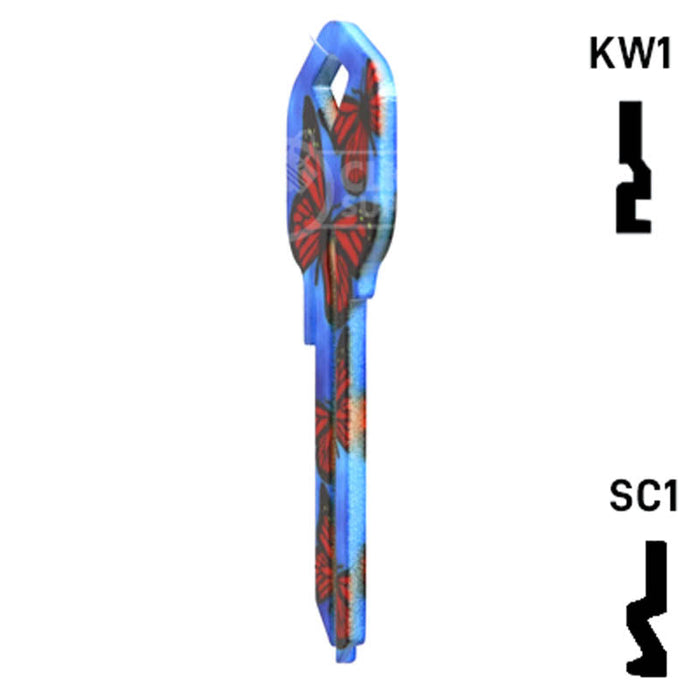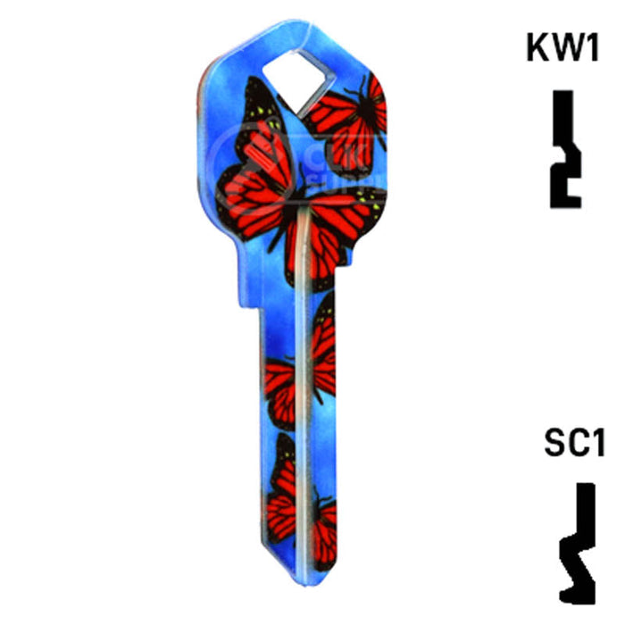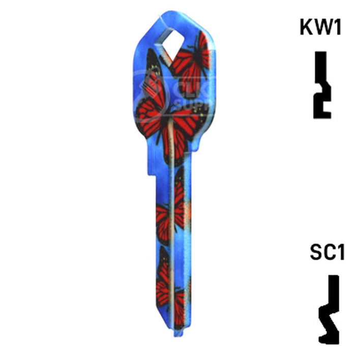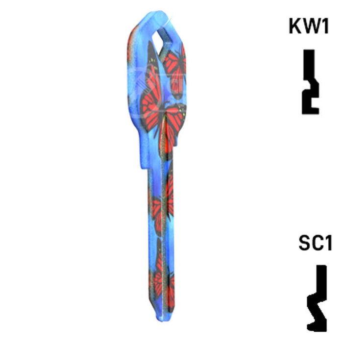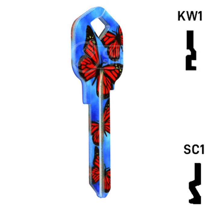 The Uncut Happy Keys- Butterflies Key is a high quality, made in the USA key blank that features a vibrant butterfly design. This key blank is perfect for locksmiths and key cutting professionals looking to add a touch of color and happiness to their key collection. Sold in packs of 5, these keys are compatible with Kwikset KW1, KW10, and Schlage SC1 locks.
