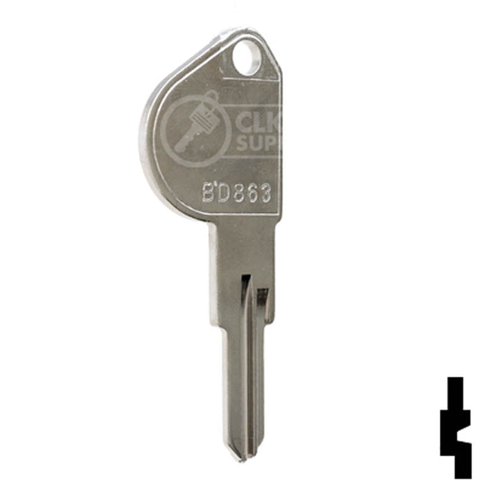 Key Blank for Mailbox Lock with Indicator The Uncut Mailbox Key (BD861) is a key blank specifically designed for mailbox lock with indicator. This key blank is perfect for locksmiths and key cutting professionals as it allows them to easily cut and create a custom key for their clients' mailbox locks. This key blank is compatible with locks from popular brands such as Home Depot and Lowes. It is made of high-quality materials and ensures a secure fit for the mailbox lock.old at Home Depot and Lowes