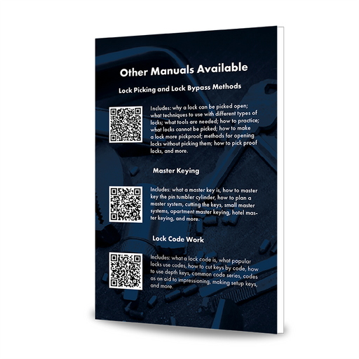 Lock Picking and Lock Bypass Methods Manual Includes: why a lock can be picked open; what techniques to use with different types of locks; what too...