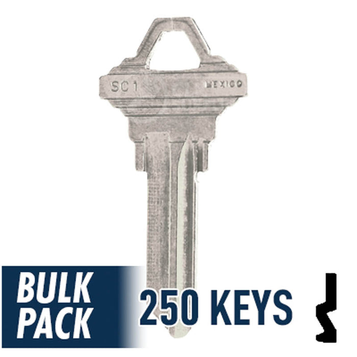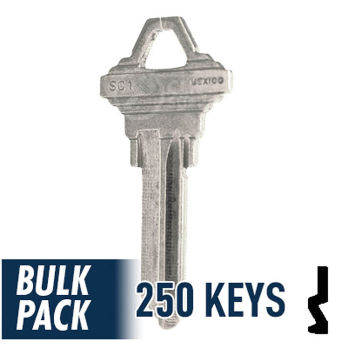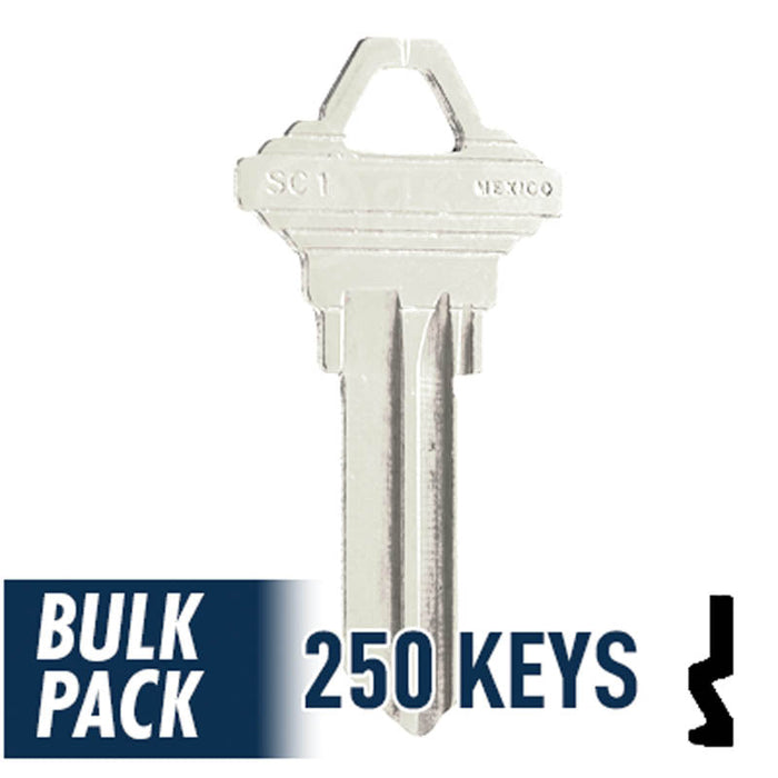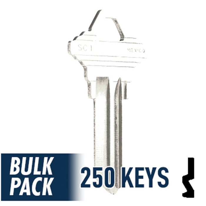 Uncut Key Blank | Schlage | SC1 - 250 Pack ( Nickel Plated )