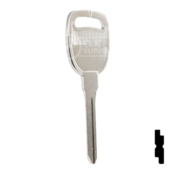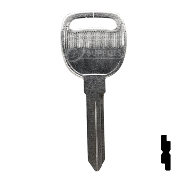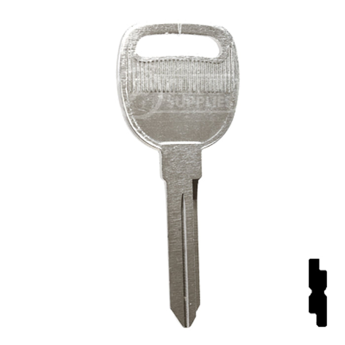 Expertly cut keys with precision and ease using this high-quality key blank designed for General Motors vehicles. Perfect for locksmiths and professional key cutters, this blank is reliable and essential in key duplication services. Don't settle for less, upgrade your key cutting supplies today.